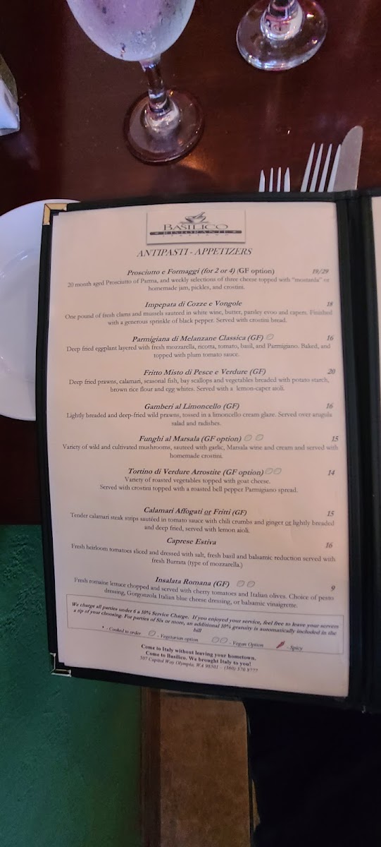 Welcome to Basilico Ristorante, the quintessential Italian dining experience nestled in the heart of Olympia. The menu is a celebration of traditional flavors fused with modern techniques. Start your culinary journey with their exquisite Parmigiana Di Melanzane, a gluten-free delight featuring crispy eggplant layered with fresh mozzarella and basil, enveloped in rich tomato sauce. For the main course, the Filetto Di Manzo stands out—a succulent tenderloin wrapped in prosciutto, served with your choice of decadent toppings. Vegetarian and vegan options are equally alluring, with dishes like the Raccolto Di Stagione, a harmonious blend of seasonal vegetables and grilled mushrooms. Don’t miss the decadent desserts; the classic Tiramisu and fruity Panna Cotta offer perfect endings to your meal. With rave reviews highlighting both the food and ambiance, Basilico Ristorante promises an unforgettable journey to Italy without leaving Olympia.